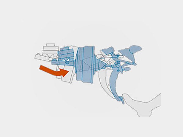 Podczas zderzenia z pieszym przedni zderzak najczęściej uderza w nogi. Żeby zminimalizować efekty obrażeń, zastosowaliśmy w tym elemencie tłumiącą wstrząsy konstrukcję. Dzięki takiej budowie przedni zderzak pochłania większość wytworzonej podczas zderzenia energii, którą zazwyczaj przyjmują nogi pieszego. Chroni więc stawy kolanowe i inne części ciała przed ewentualnymi urazami.